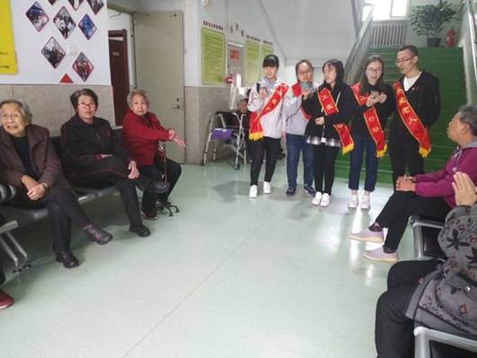 第一组队伍前往呼和浩特市回民区天泽老年公寓。慰问敬老院的孤寡老人,给他们送去关爱与温暖,同学们为敬老院的老人打扫房间,给老人们营造洁净舒适的环境,大家一起陪老人们聊天,有说有笑,消除老人内心的孤单,在和他们的聊天中发现老人们平日里很孤独,儿女大多不在身边,有的甚至没有儿女,他们要的不是简单的金钱所能代替的,更希望有他人的陪伴。最后我们还为老人们表演提前准备好的节目,他们开心的笑容让我们感到幸福。让我们知道我们的努力是有意义的。