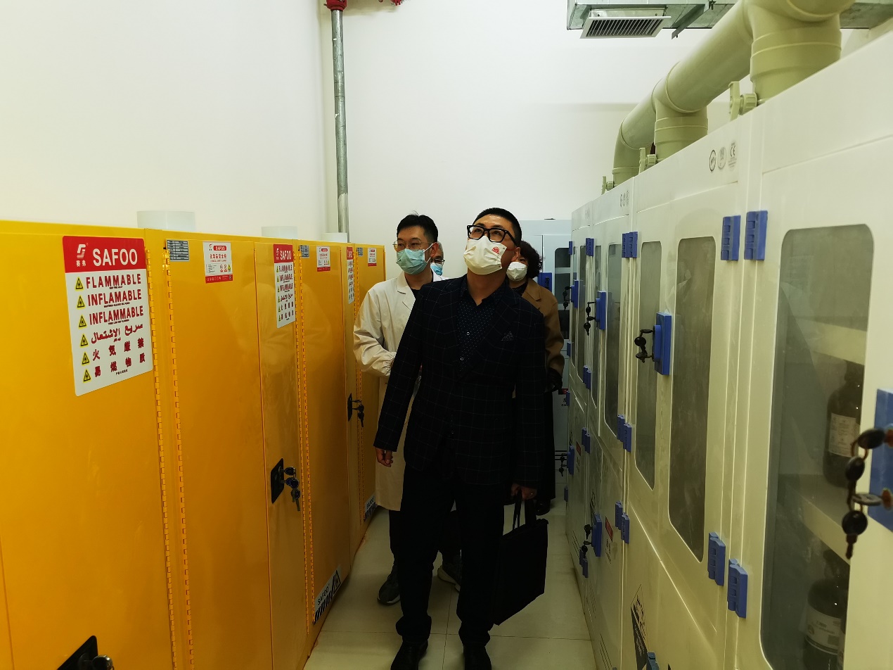 3月7日下午,自治区全国两会维稳安保专项督导第三督导组到我院进行危化品库房安全督导检查。学校实验室与实验设备管理中心主任刘崎峰、太阳集团tyc138党委书记朱保华等相关单位负责同志陪同检查。