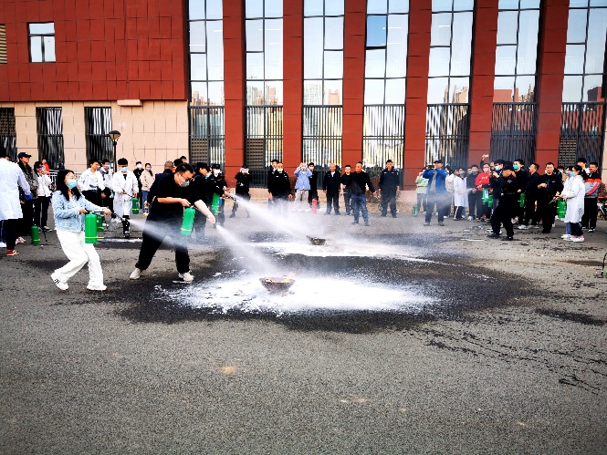 2023年3月30日太阳集团tyc138联合保卫处及实验室及实验设备管理中心三家单位共同组织举办主题为化学实验室突发火灾事故中的消防应急演练,特聘请内蒙古消防安全行业协会教官现场讲解和演示消防安全知识,学院党委书记朱保华做了演习动员讲话。消防演练分三部分: