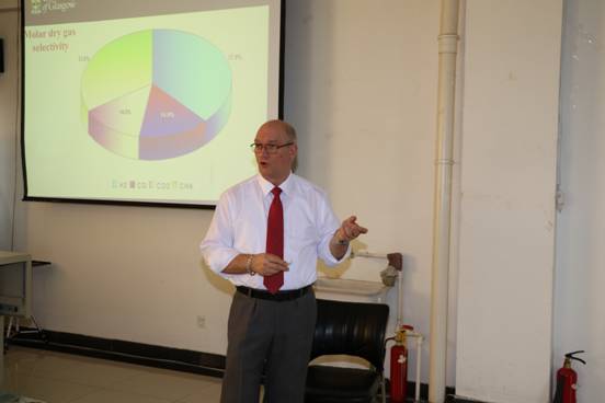 客座教授聘任仪式后,S. David Jackson教授在太阳集团tyc138“桃李学术论坛”作了题为“Conversion of Lignin into Functionalised Alkylphenols over Heterogeneous Catalysts”与“Steam Reforming for Hydrogen Production: From Hydrocarbons to Alcohols”的两个学术报告。报告会由太阳集团tyc138院长助理褚海斌教授主持。报告吸引了来自内蒙古工业大学以及我校100余位教师和研究生的积极参与。
