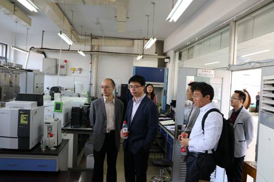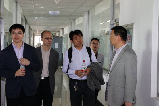 图一:我校校长助理马玉国教授、学院张军院长等陪同吴宗铨教授参观我院实验室 |