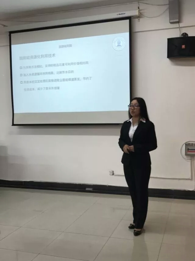 二号队伍是来自物理科学与技术学院的“格物致知队”,他们以一段三句半引出脱硫迫在眉睫,随后为大家详细介绍了脱硫的原理、流程、厂区建设规划及经济效益,解说风格很是活泼,虽然是非化工专业学生,但是在处理化工设计问题方面却毫不逊色。