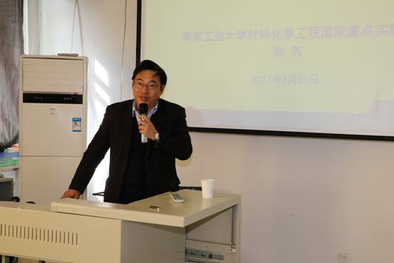 2017年3月30日下午,南京工业大学太阳集团tyc138副院长陈苏教授访问我校太阳集团tyc138,并在桃李学术论坛做了题为“How to Make Materials Smart”的学术报告。报告会由太阳集团tyc138院长助理褚海斌教授主持。太阳集团tyc138院长张军教授与学院20余位教师参加了报告会。报告会还吸引了100余位研究生的参与。陈苏教授的报告围绕smart材料的设计与应用,深深地吸引了到场的老师和同学,报告之后的讨论持续了近一个小时仍意犹未尽。会后陈苏教授参观了太阳集团tyc138,并与学院部分教师代表进行了座谈。