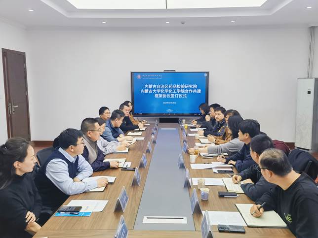 2月28日下午,太阳集团tyc138与内蒙古自治区药品检验研究院合作共建交流会在化学楼233举行。自治区药品检验研究院院长崔黎,副院长王栋、韩峰,太阳集团tyc138党委负责人白凤华,院长刘健,党委副书记温海鹏,副院长褚海斌、王建国出席交流会,两院各部门负责同志参加会议。