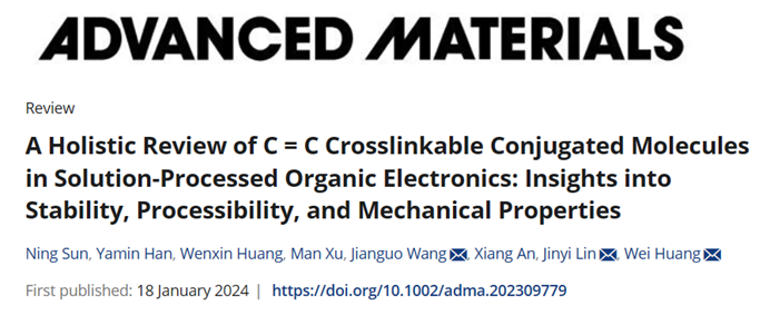 N. Sun, Y. Han, W. Huang, M. Xu, J. Wang, X. An, J. Lin, W. Huang, A Holistic Review of C=C Crosslinkable Conjugated Molecules in Solution-Processed Organic Electronics: Insights into Stability, Processibility, and Mechanical Properties. Adv. Mater. 2024.