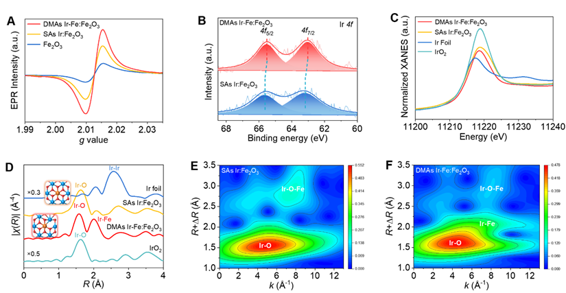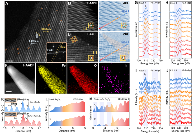 图 1. SAs Ir:Fe2O3和 DMAs Ir-Fe:Fe2O3的表征 。