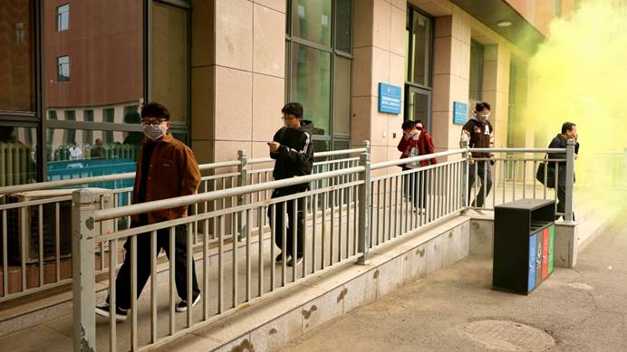 当日下午,消防应急演练在学院实验楼前正式拉开帷幕。模拟场景设定为实验楼突发火灾,现场浓烟弥漫。学院立即启动应急预案,发出紧急疏散警报。师生们迅速按照预定疏散路线,用湿毛巾捂住口鼻,弯腰低姿态有序撤离。各班级负责人和现场志愿者在关键位置引导,确保疏散过程高效、安全。短短5分钟内,全体人员顺利撤离至安全区域,无一人遗漏或受伤。