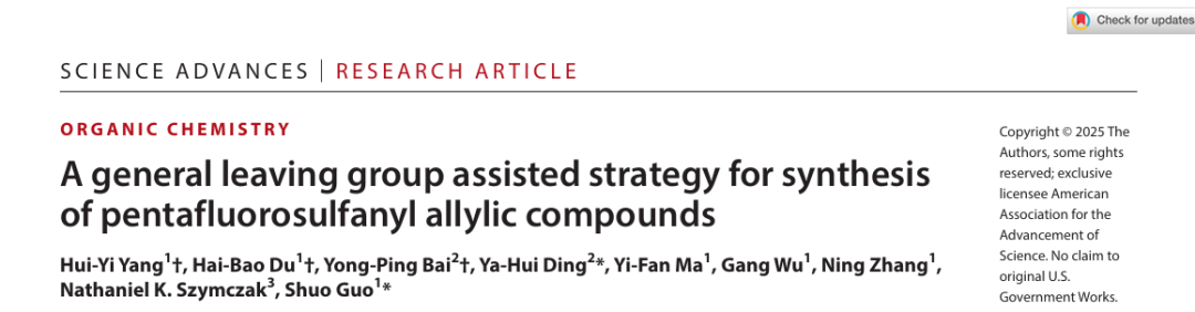 光诱导策略驱动五氟硫基化学—郭硕课题组在Sci. Adv.和JACS连续发表突破性成果