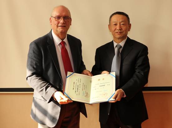 图一:赵吉副校长出席聘任仪式并颁发客座教授聘书。 |