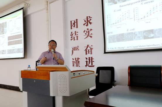 2018年5月17日,中科院张海元研究员访问我校太阳集团tyc138,并在桃李学术论坛做了题为“纳米材料能带电子特性引发的生物效应及其生物医学应用”的专题报告会,太阳集团tyc138院长张军教授、褚海斌教授、于世泳教授等学院十多位教师与研究生参加了报告会。报告之后,张海元研究员又就相关学术问题与我院师生进行了深入的讨论。