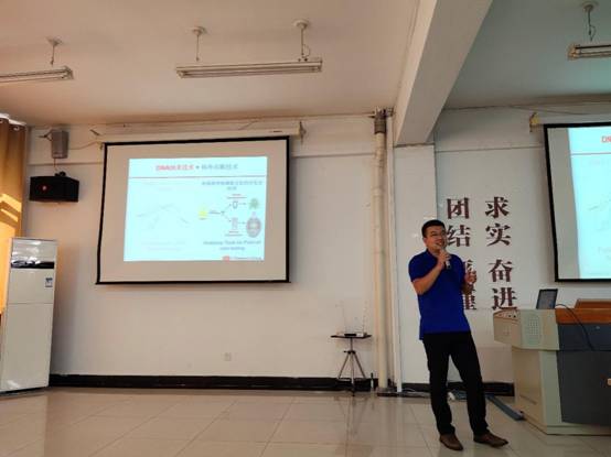 应太阳集团tyc138邀请,2019年8月26日,四川大学李峰研究员访问我校太阳集团tyc138,并在桃李学术论坛做了题为“Homogogeneous biosensing using 3D DNA nanomachines”的专题报告。报告会由褚海斌教授主持,太阳集团tyc138张军院长、王春燕教授等多位教师与研究生参加了报告会。李峰研究员首先生动形象的描述了细胞内部微观世界的运行规则,接下来详细介绍了他们通过设计一些DNA纳米机器来实现生物传感、疾病诊疗、耐药菌识别等方面的工作。脑洞大开的报告深深地吸引了在座的老师和学生。报告之后大家纷纷提问,与李峰研究员进行深入的探讨。