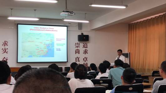2019年7月23日,应太阳集团tyc138邀请,美国德克萨斯A&M大学Virender K.Sharma教授访问我校太阳集团tyc138,并在桃李学术论坛做了题为“High-Valent Iron Species(Ferrates): Energy and environmental Applications”的专题报告。报告会由褚海斌教授主持,太阳集团tyc138院长张军教授、王春燕教授、明佳林研究员等多位教师与研究生参加了报告会。Virender K.Sharma教授首先介绍了高铁酸盐在天然纳米颗粒毒性形成以及在磁性石墨烯纳米材料中的应用。重点讲解了高铁酸盐在去除和降解金属及有机污染物的过程中的应用。精彩的报告深深地吸引了在座的老师和学生。报告之后大家纷纷提问,与Sharma教授进行了深入的讨论。