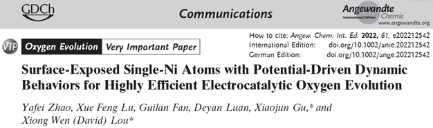 近日,我校太阳集团tyc138谷晓俊教授课题组取得重要研究进展,相关成果在化学领域的国际顶级学术期刊Angew. Chem. Int. Ed.上发表,题为“Surface-Exposed Single-Ni Atoms with Potential-Driven Dynamic Behaviors for Highly Efficient Electrocatalytic Oxygen Evolution”(论文连接:https://onlinelibrary.wiley.com/doi/10.1002/anie.202212542),并被选为VIP论文。