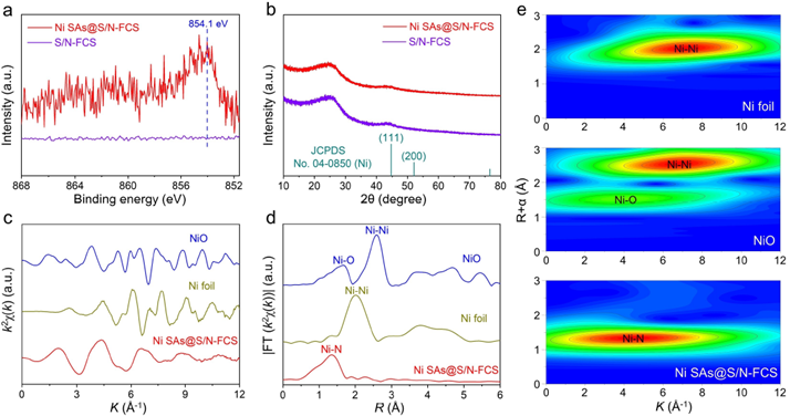 电子显微镜表征结果显示,催化剂Ni SAs@S/N-FCS具有中空结构,Ni以单原子分布在中空碳球表面(图1)。X射线精细结构谱学研究表明,Ni的价态在0与+2之间,Ni与N配位而与S不配位,其配位数为4(图2);Ni-N键的存在说明Ni与S/N共掺杂的中空碳球之间有强相互作用,利于电催化过程中电子的高效传输。