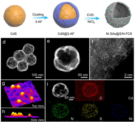图1. 中空Ni单原子催化剂的制备路线、形貌和结构