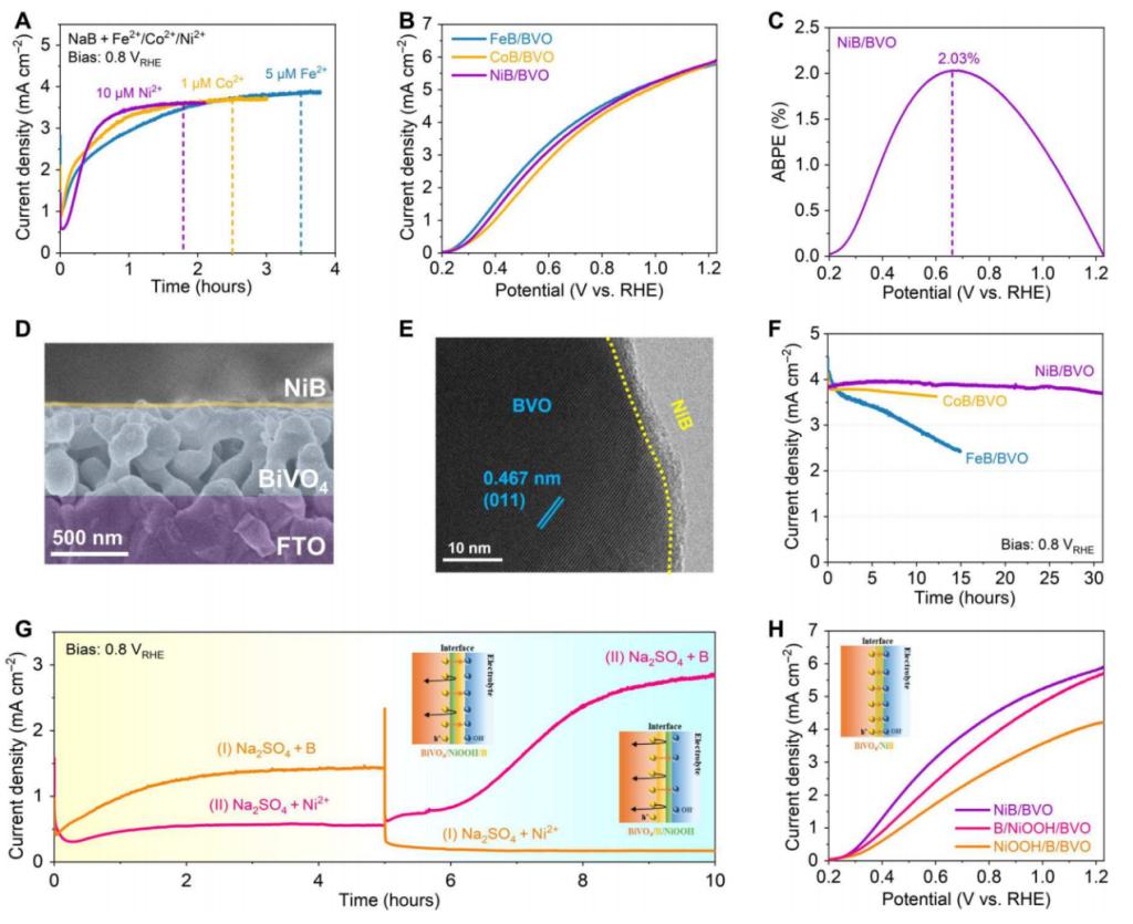 图2 原位NiB助催化剂电化学合成与表征。