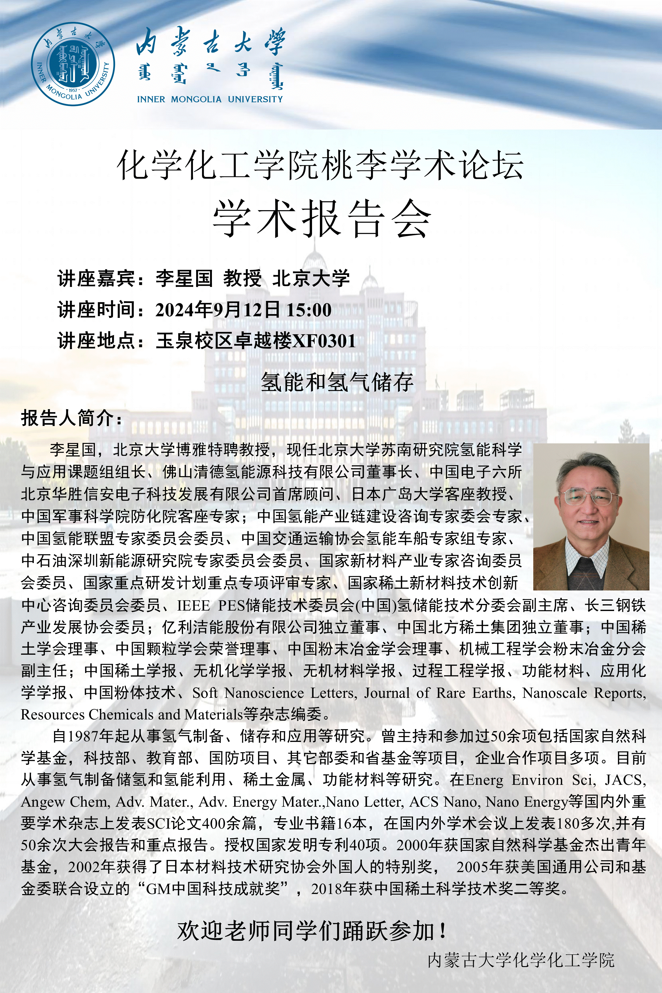 太阳集团tyc138桃李学术论坛——氢能和氢气储存 李星国 教授 北京大学