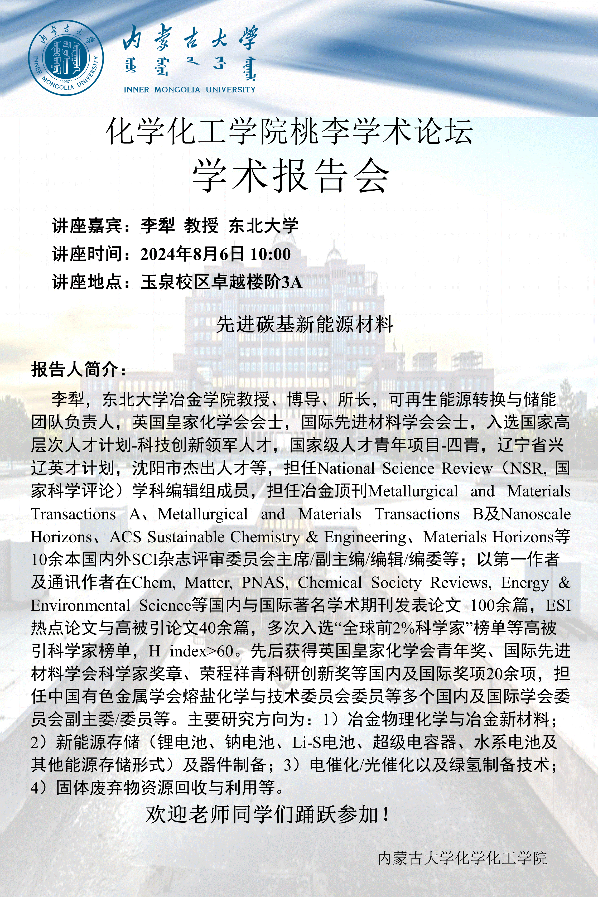 太阳集团tyc138桃李学术论坛——先进碳基新能源材料 李犁 教授 东北大学