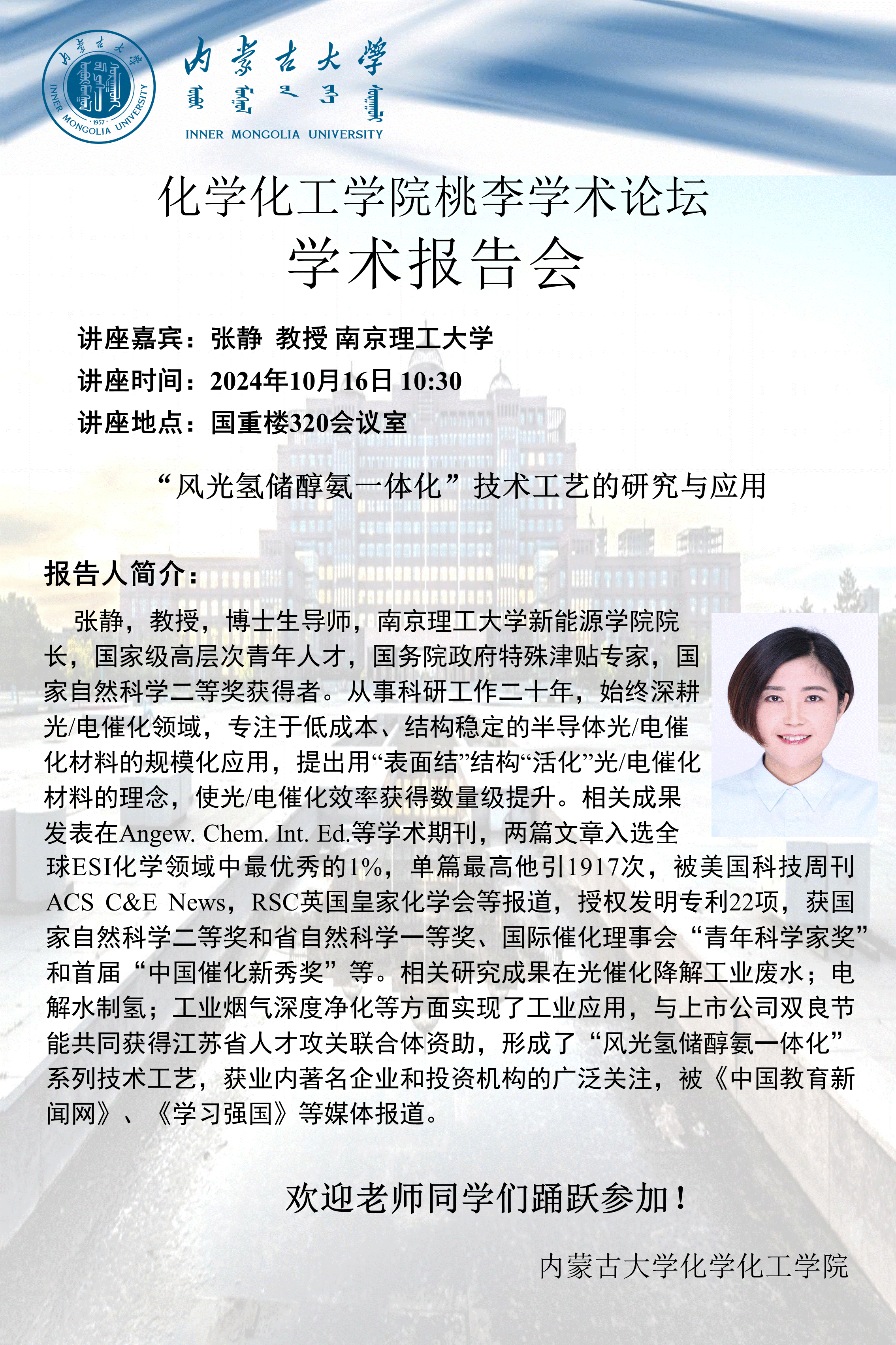 太阳集团tyc138桃李学术论坛——“风光氢储醇氨一体化”技术工艺的研究与应用 张静 教授 南京理工大学